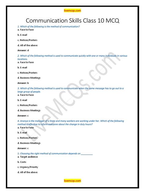 Read Online mcq communication skills Nook Internet Archive